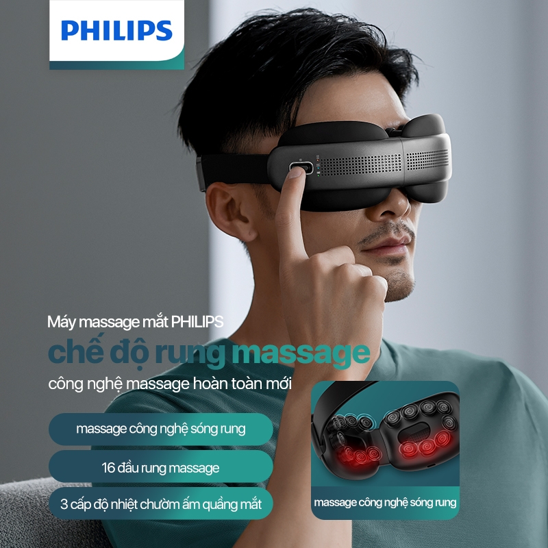 Máy massage mắt PHILIPS PPM2522 là giải pháp thư giãn chuyên biệt dành cho những người thường xuyên làm việc với máy tính, điện thoại hoặc thiết bị điện tử trong thời gian dài. Sản phẩm kết hợp giữa massage rung và chườm ấm hiện đại, giúp giảm đau mỏi, cải thiện tuần hoàn máu và mang lại cảm giác dễ chịu cho vùng mắt sau những giờ học tập và làm việc căng thẳng.