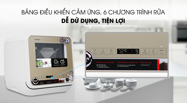 Máy Rửa Chén Toshiba DWS-22AVN(N) kiểu dáng nhỏ gọn, sang trọng, phù hợp cho người da tay bị dị ứng với nước rửa chén, dành thên thời gian bên gia đình.