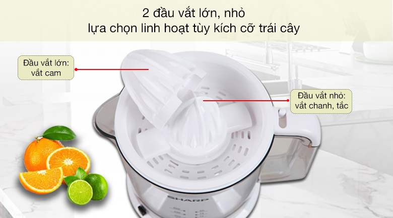 Đầu vắt làm từ nhựa PP cho độ bền cao, không dễ bị oxi hóa và không làm thôi nhiễm các chất độc hại vào nước ép, mang đến những ly nước trái cây đầy đủ dưỡng chất cho gia đình. Hai đầu vắt lớn nhỏ khác nhau, giúp bạn có thể sử dụng với nhiều loại hoa quả như chanh, quất, cam,...