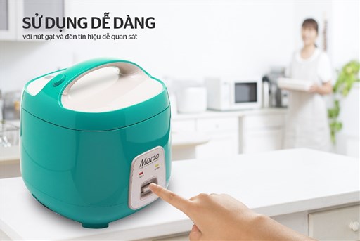 Nồi được trang bị nút gạt cơ học với hai chế độ “Nấu – Cook” và “Hâm nóng – Warm”, kèm đèn báo hiệu rõ ràng, giúp người dùng dễ dàng quan sát. Các chi tiết như nắp trong, khay hứng nước thừa và lòng nồi đều có thể tháo rời, thuận tiện khi vệ sinh. Lòng nồi chống dính giúp việc rửa sạch nhanh chóng mà không cần tốn nhiều công sức.