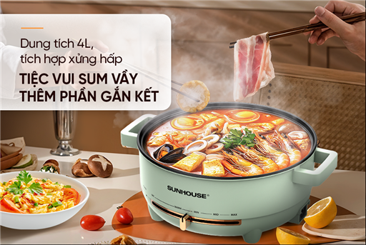 NỒI LẨU ĐIỆN SUNHOUSE SHD4540 – LẨU & HẤP ĐA NĂNG, TIỆN LỢI CHO MỌI GIA ĐÌNH