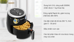 Dung tích nồi chiên 5 lít sử dụng thoải mái với thực phẩm dày và lớn, chiên nướng lượng nhiều thực phẩm trong 1 lần dùng.