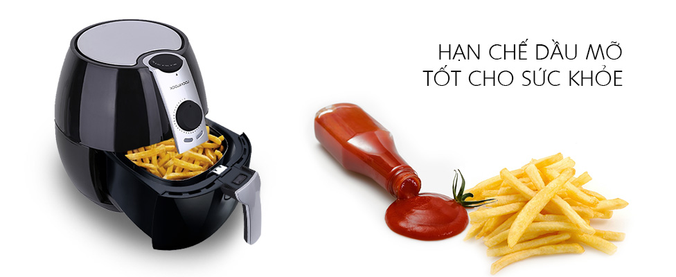 Công nghệ mới cho phép bạn rán, nướng bánh, nướng và quay thực phẩm nhanh chóng, ít chất béo hơn so với nồi chiên thông thường nhờ việc sử dụng ít dầu hoặc không có dầu, cũng tạo ra ít mùi hơn và an toàn cho sức khỏe.