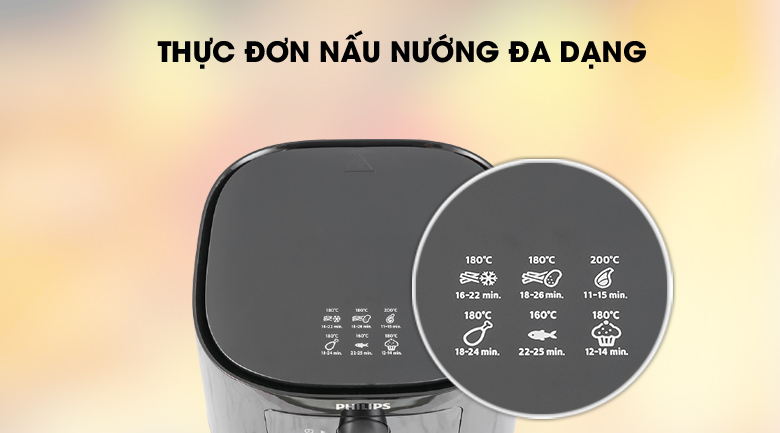 Sản phẩm với thực đơn cài đặt sẵn, sử dụng tốt để làm các món như khoai tây chiên, thịt, cá, hải sản nướng, làm bánh...