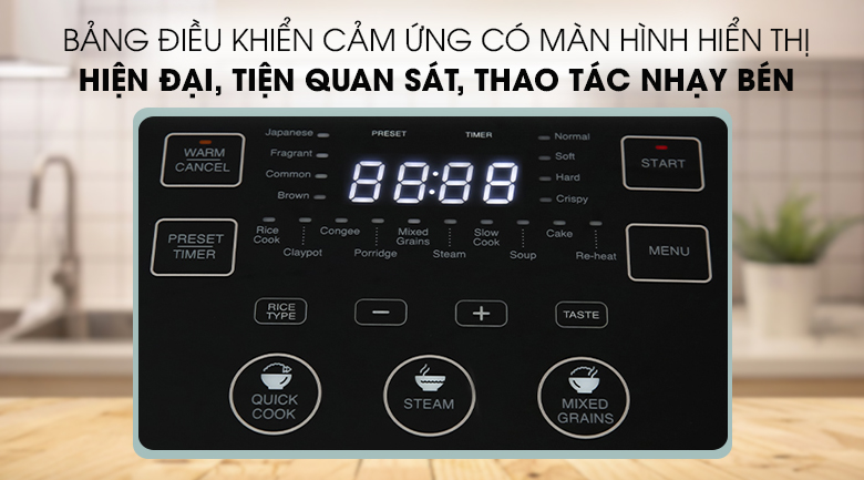 Chức năng hẹn giờ nấu lên đến 24h tiện lợi cho phép bạn chọn thời gian nấu thích hợp, món ăn được chế biến trong đúng khoảng thời gian cần thiết để đạt độ ngon nhất.