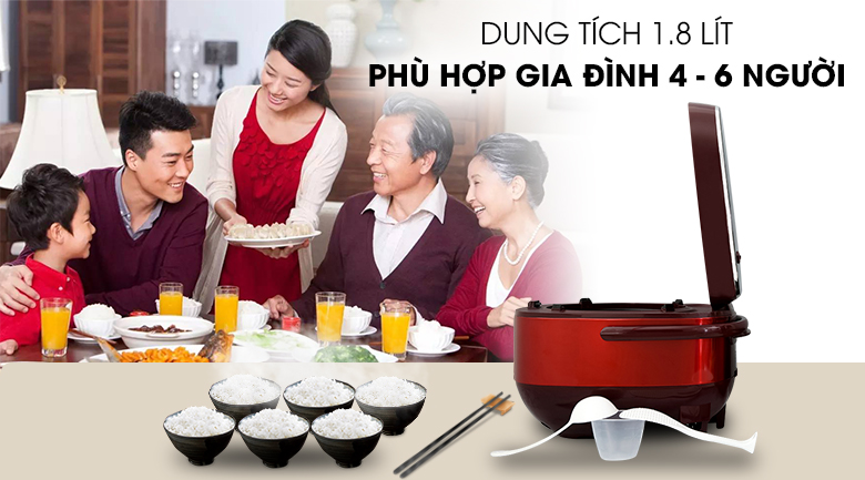 Cho phép nấu từ 8 - 10 cốc đong gạo đi kèm với nồi.