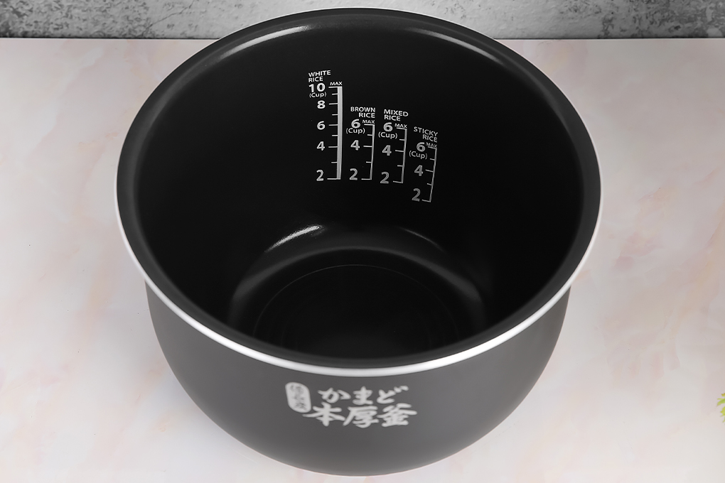 Lòng nồi 3 lớp dày dặn 3 mm hợp kim nhôm phủ bột kim cương và lớp Titanium dày bền, nấu cơm ngon, vệ sinh nhanh gọn