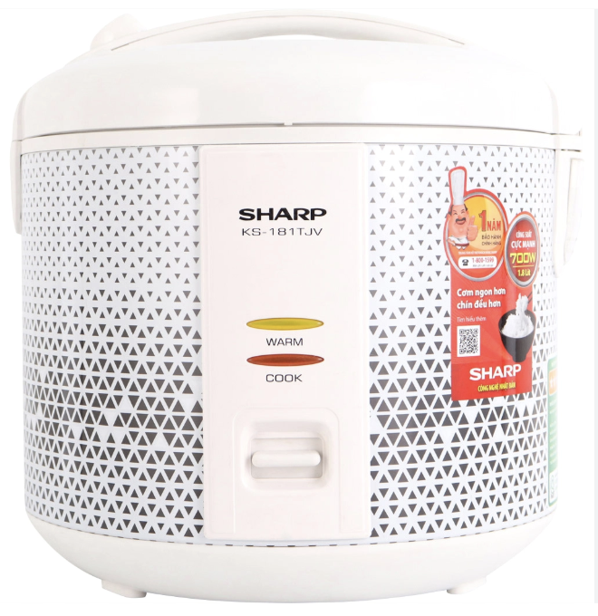 Nồi cơm nắp gài Sharp KS-181TJV đến từ thương hiệu nồi cơm điện số 1 Nhật Bản – Sharp, sản phẩm có kiểu dáng đẹp, sử dụng bền lâu, thiết kế tiện dụng, thích hợp cho các gia đình đông người và cho các nhóm sinh viên, học sinh sử dụng nấu cơm hằng ngày.