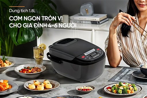Chức năng: Nấu cơm, Giữ ấm, Nấu nhanh, Cơm cháy, Cháo, Ninh/Hầm, Canh/Súp