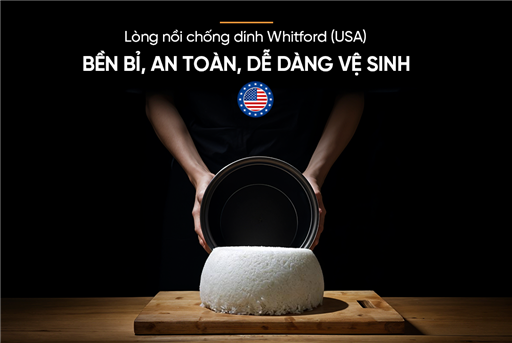 Lòng nồi của SHD8909B được cấu tạo từ hợp kim nhôm cao cấp, phủ lớp chống dính Whitford (USA), hạn chế hoàn toàn tình trạng cơm bám đáy hay cháy khét. Lớp phủ này không chỉ chịu được nhiệt độ cao, chống trầy xước tốt mà còn an toàn cho sức khỏe, không sinh ra chất độc hại trong quá trình sử dụng. Sau khi nấu, người dùng có thể vệ sinh nồi một cách dễ dàng, giúp tiết kiệm thời gian và công sức.