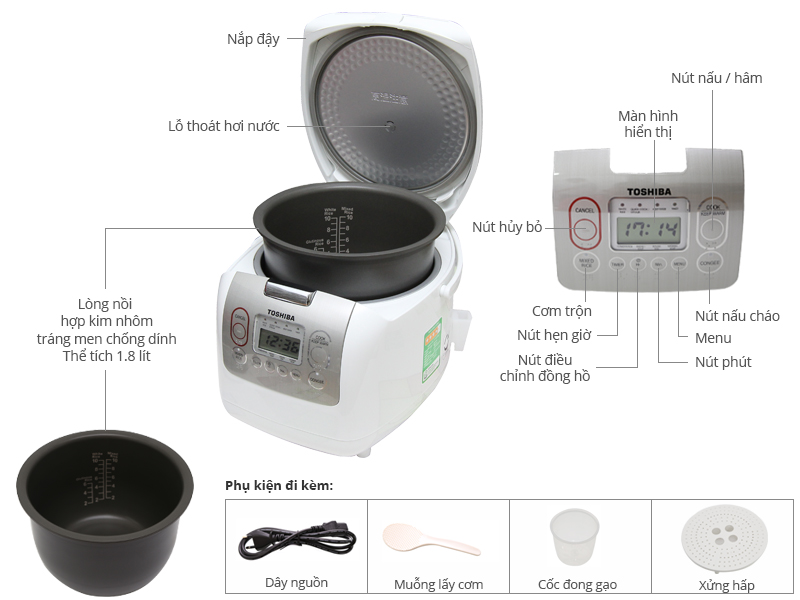 Nồi cơm điện tử Toshiba 1.8 lít RC-18NTFV (W)
