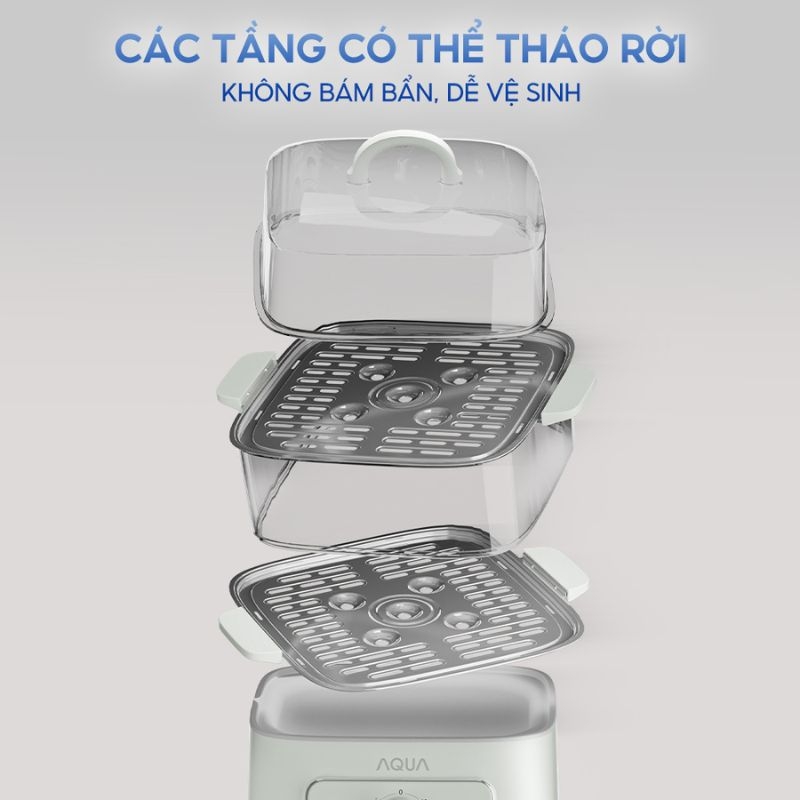 Thiết kế hai xửng hấp đa tầng giúp nấu và hấp cùng lúc nhiều loại thực phẩm mà không lo lẫn mùi. Tầng đáy có thể sử dụng để nấu lẩu hoặc hấp kín, trong khi tầng trên thích hợp cho rau củ, hải sản và các món cần độ chín đều. Cấu trúc này tối ưu không gian và tiết kiệm đáng kể thời gian chế biến.