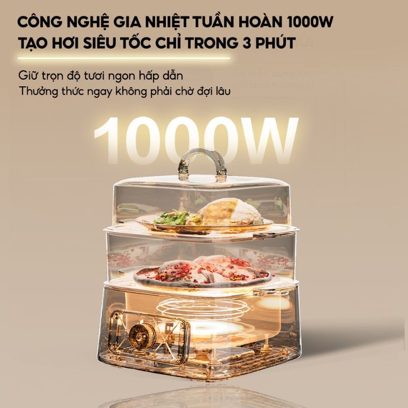Với công suất 1000W, nồi có khả năng gia nhiệt nhanh, giúp rút ngắn thời gian chờ đợi. Hơi nước phân bổ đều, hỗ trợ thực phẩm chín đồng đều và giữ được độ tươi ngon. Nhờ hiệu suất ổn định, sản phẩm phù hợp cho các món lẩu, hấp, luộc hoặc nấu cháo, mang lại sự chủ động khi chuẩn bị bữa ăn.
