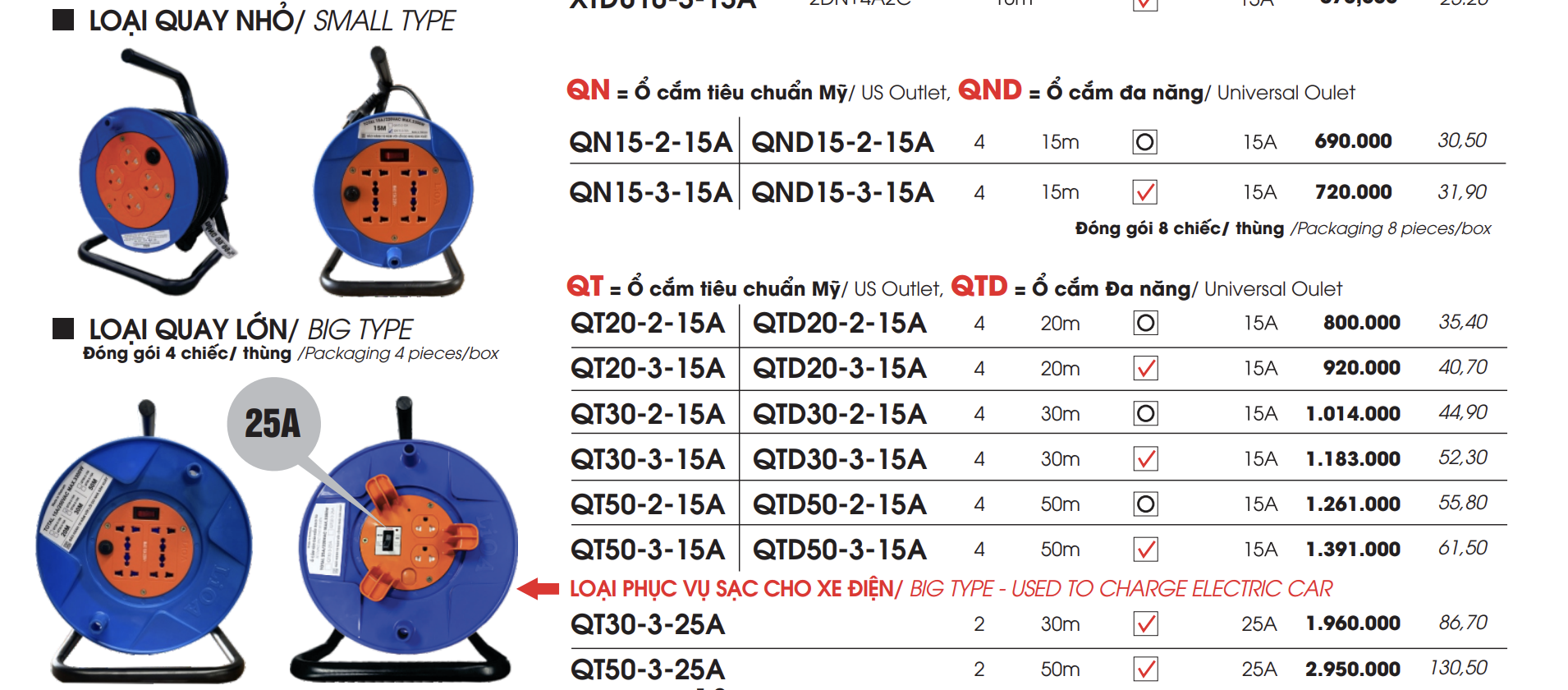 Ổ CẮM KÉO DÀI QUAY TAY KIỂU RULO QT20-2-15A