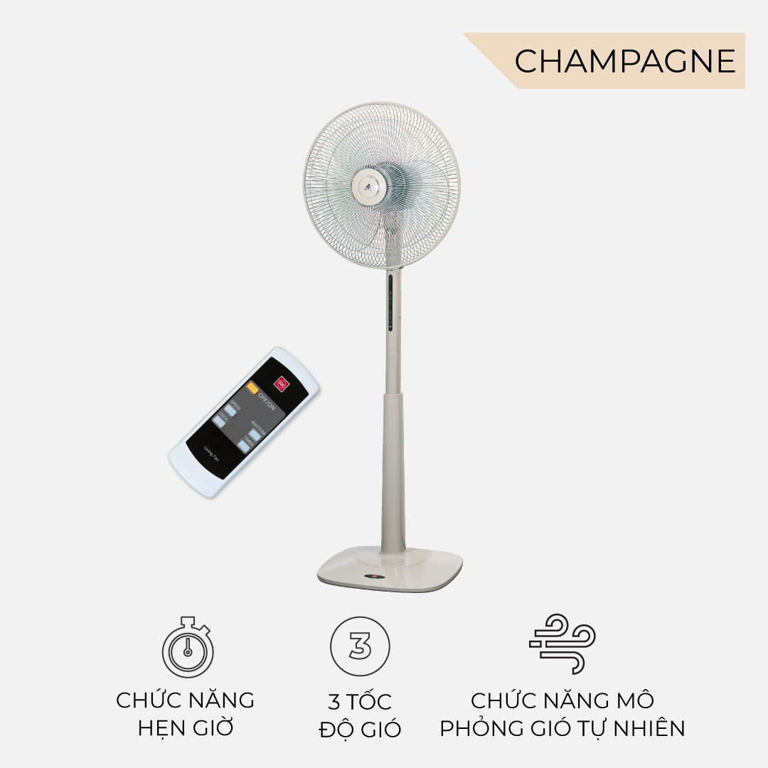 Cánh quạt làm bằng nhựa trong suốt, thiết kế đẹp mắt, cùng hai lựa chọn màu thân sang trọng: xám ghi và vàng sâm banh. Sản phẩm được bảo hành 2 năm chính hãng.