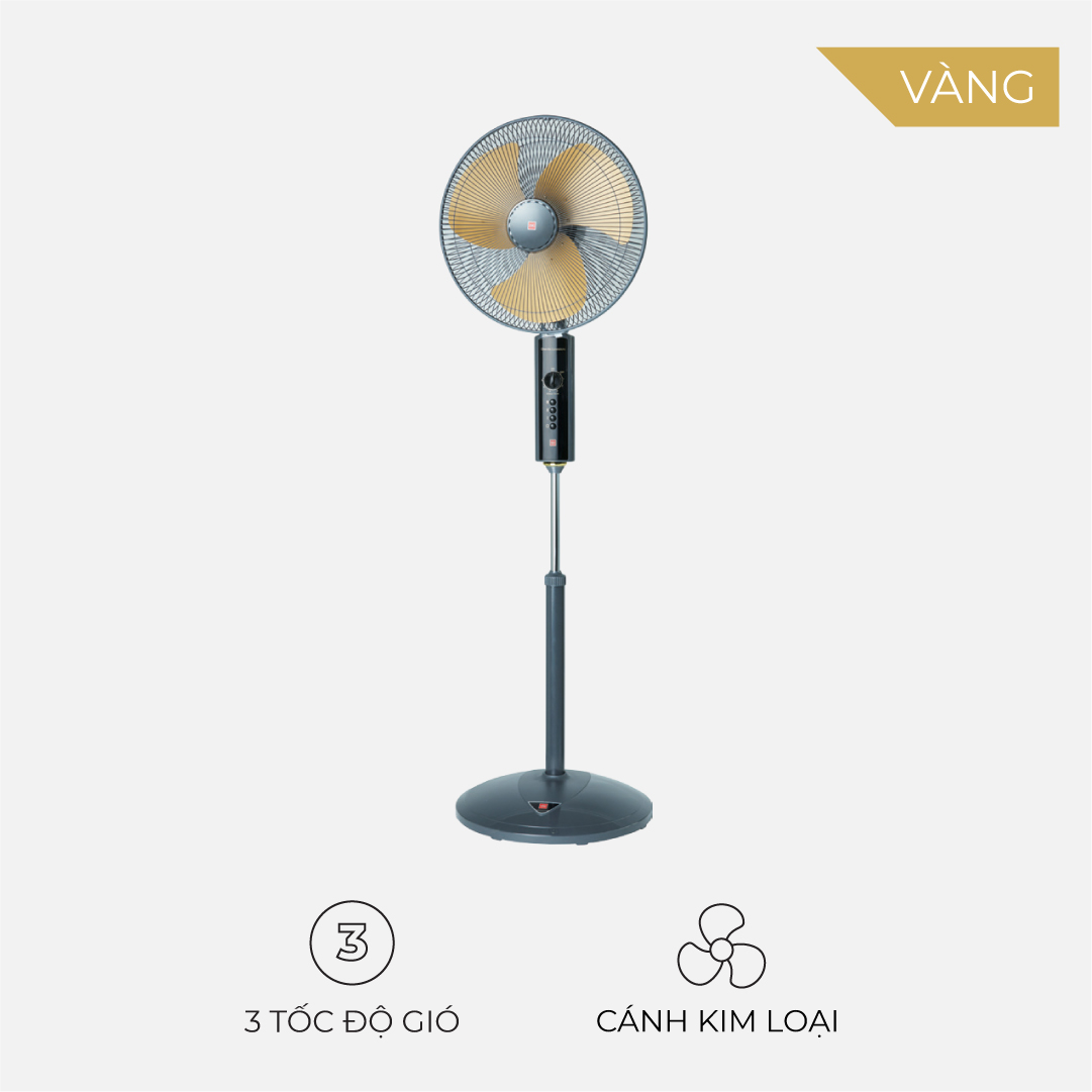 Cánh quạt được làm bằng kim loại bền chắc với màu vàng nổi bật, vừa tạo sự chắc chắn vừa mang lại tính thẩm mỹ. Sản phẩm được bảo hành 2 năm chính hãng.