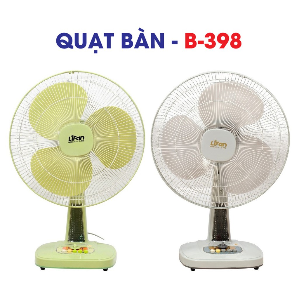 Quạt điện từ lâu đã trở nên quen thuộc và là sản phẩm gia dụng không thể thiếu trong mỗi gia đình. Quạt bàn Lifan B-398 có mẫu mã đẹp, phù hợp với thói quen sử dụng quạt của người dân Việt Nam, đây là sản phẩm của hãng Lifan đạt thương hiệu Hàng Việt Nam Chất Lượng Cao.