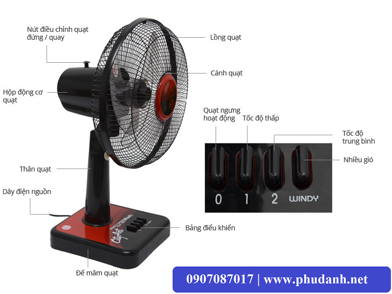 Dễ dàng điều chỉnh lượng bằng nút điều khiển được tích hợp dưới chân cánh quạt dễ dàng tiện lợi dễ dàng