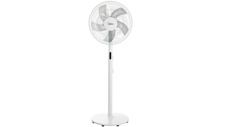 Quạt đứng Midea FS40-18BR Trắng hiện đại, bền tốt, làm mát hiệu quả và tiết kiệm điện, gia dụng hữu ích cho gia đình mùa nắng nóng.