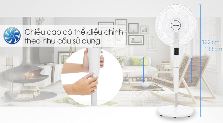 Quạt có thể điều chỉnh độ cao thấp phù hợp nhiều không gian sử dụng