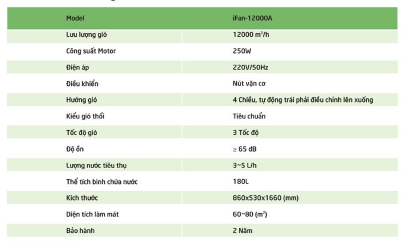 Thông số kỹ thuật Quạt làm mát iFan-12000A: