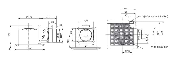 – Đấu kết nối nhanh, dễ dàng lắp ống thông gió vào đấu nối của quạt.