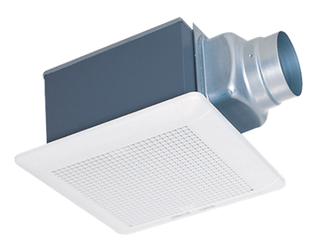 Quạt thông gió loại âm trần nối ống gió VD-10Z4T5-D của Mitsubishi Electric với lưới thông gió bằng nhựa, được sử dụng trong phòng tắm, phòng giặt, nhà vệ sinh với: