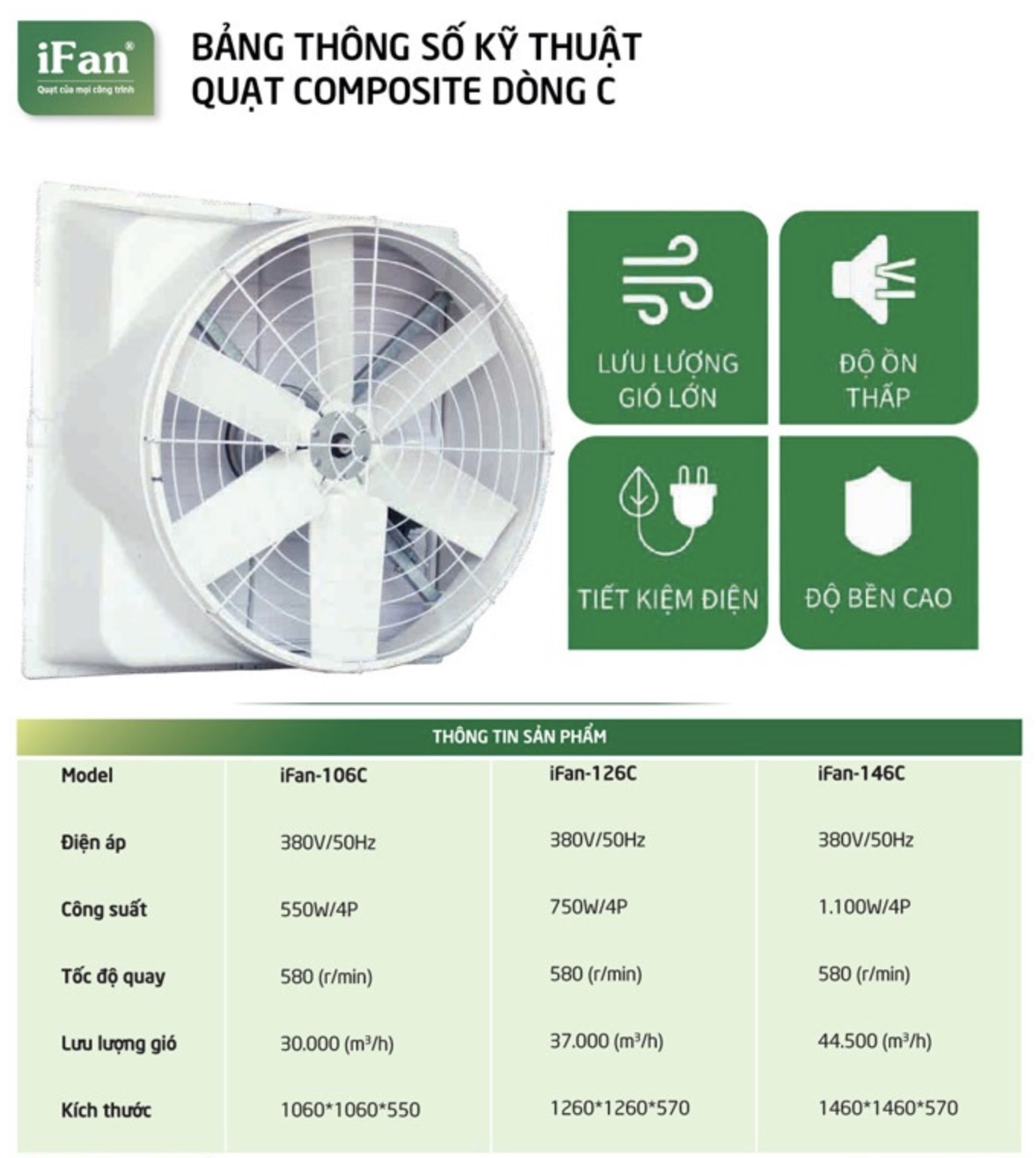 Thông số kỹ thuật Quạt thông gió dạng loa composite iFan-C: