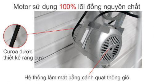 - Động cơ motor sử dụng 100% lõi đồng nguyên chất tiết kiệm điện năng, độ bền cao và mạnh mẽ. Thân motor có hệ thống làm mát bằng cánh quạt giúp tản nhiệt đảm bảo motor hoạt động liên tục mà không bị nóng.