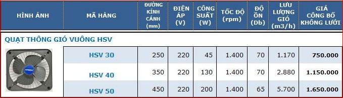 [Sản Phẩm Ngừng Kinh Doanh] Quạt thông gió vuông HAWIN - HSV 50