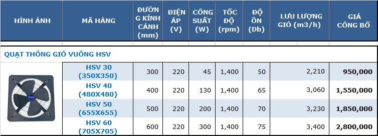 Quạt thông gió vuông HAWINCO - HSV 50 có lưới