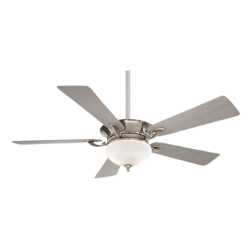 Tông màu sáng bóng bạch kim (Polished Nickel) sang trọng hòa quyện cùng 5 cánh gỗ Plywood nâu sẫm tạo nên tổng thể thanh lịch, hài hòa.