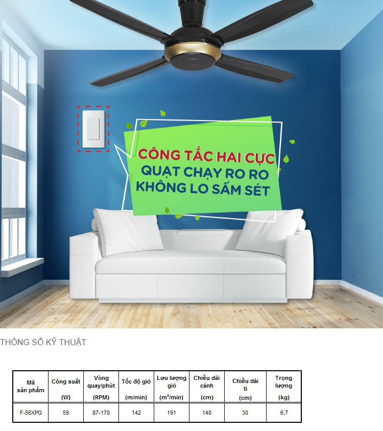 Quạt Trần Panasonic F-56XPG (màu đen, màu trắng)