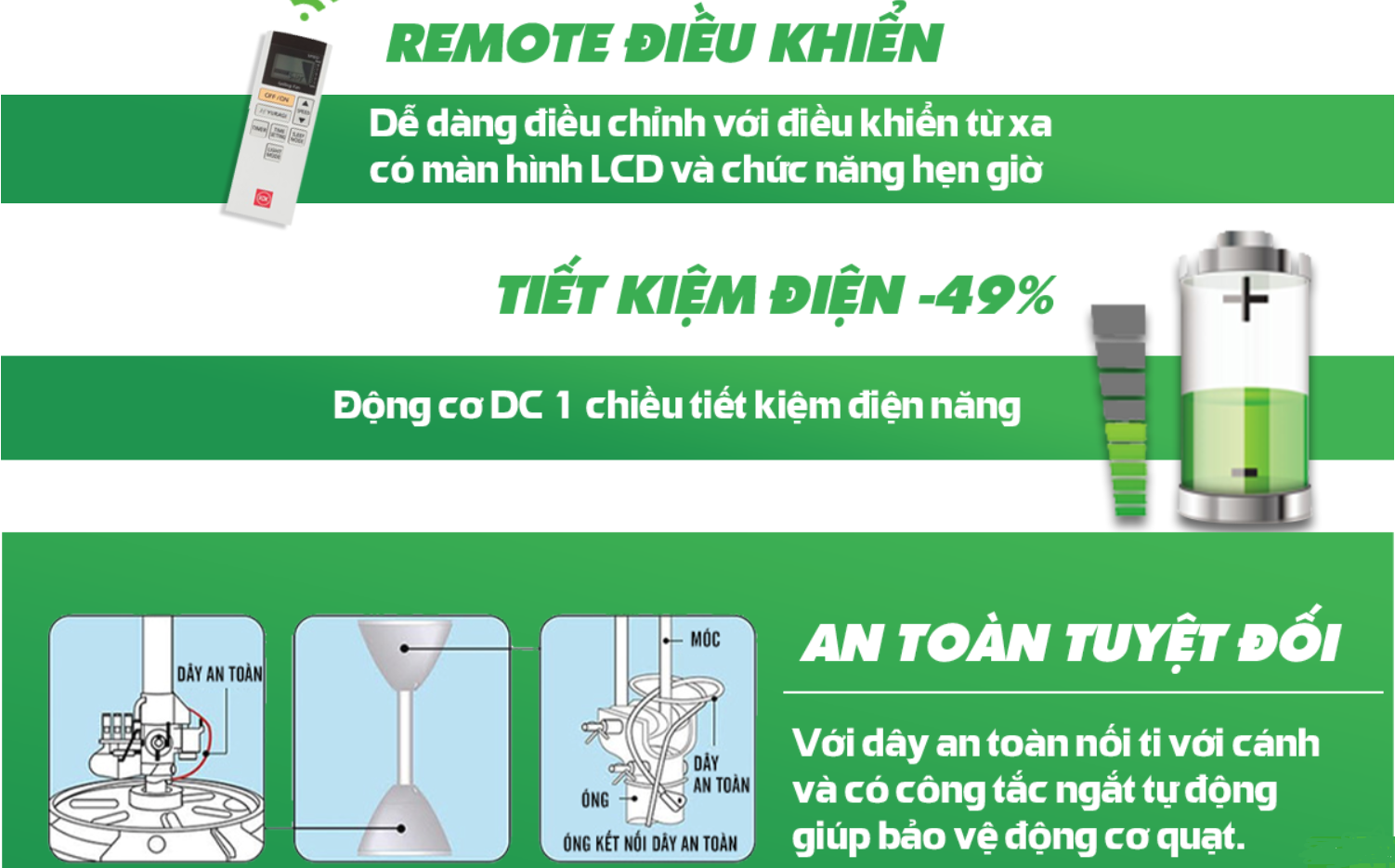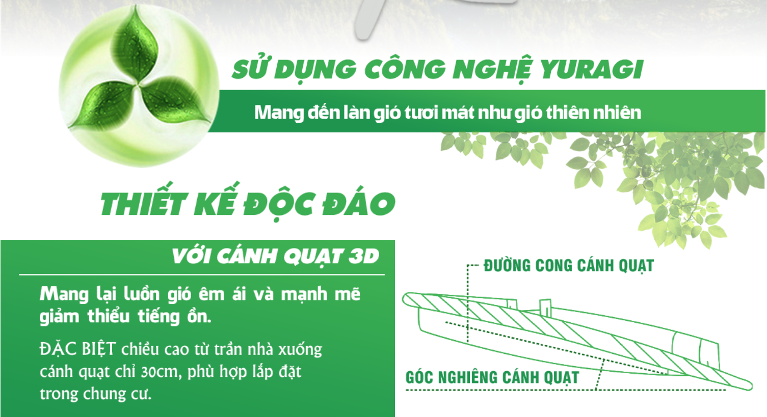 Nhờ được áp dụng công nghệ thiết kế tiên tiến, mô tơ và các cánh của quạt trần Panasonic F-56XPG được tối ưu hóa cho hiệu suất hoạt động cao, độ ồn thấp và tiết kiệm điện. Các cánh quạt được thiết kế đặc biệt cho lượng gió tản đều, rộng mà không chém vào không khí do đó không tạo ra tiếng ồn. Mô tơ của quạt chạy rất êm và ổn định.