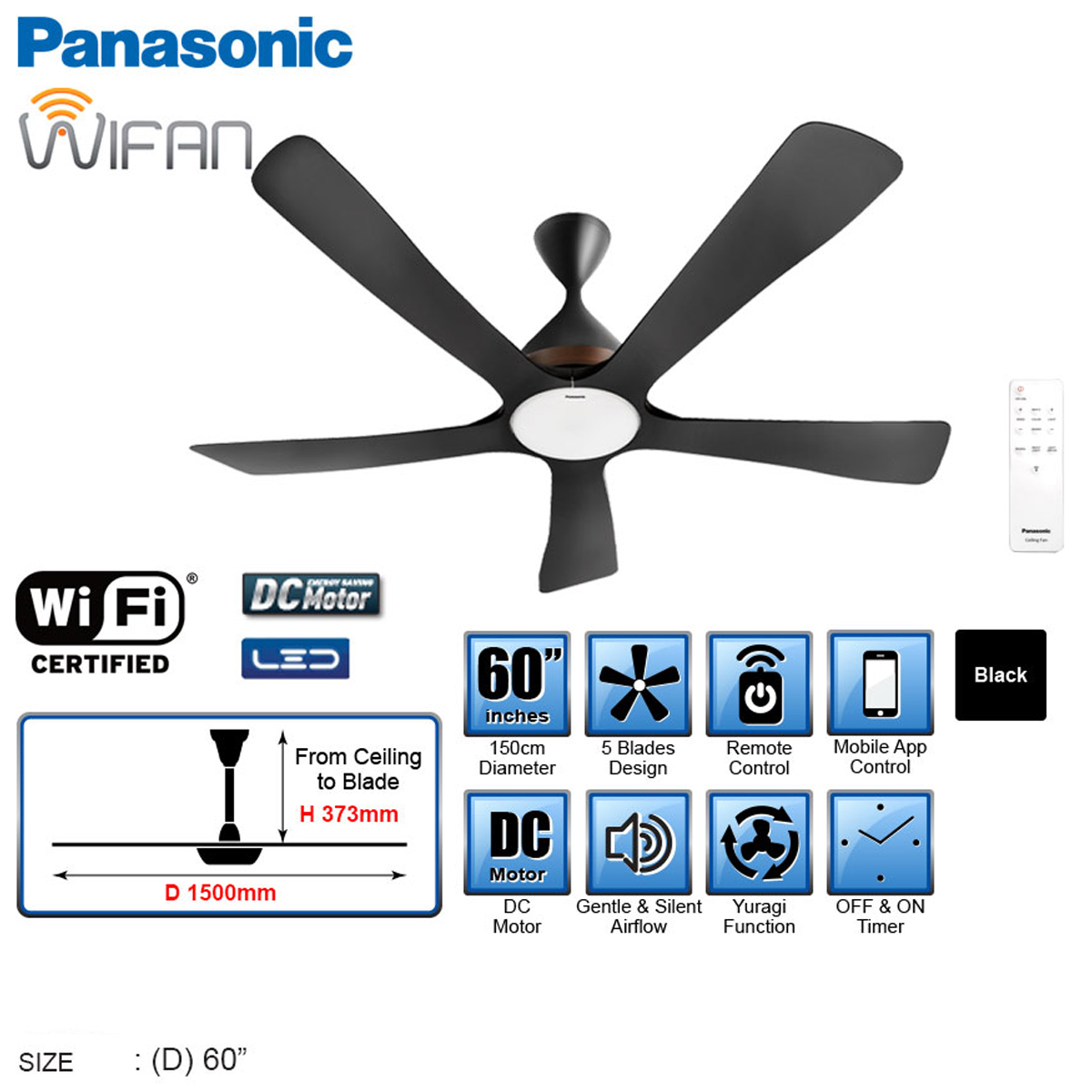 Quạt Trần Thông Minh Wifi Panasonic F-60DGN ( 5 Cánh, Có Đèn LED )