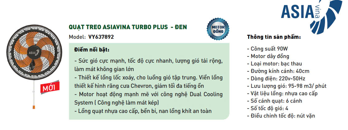 Quạt Treo Asiavina Turbo PLUS VY637892 - ĐEN