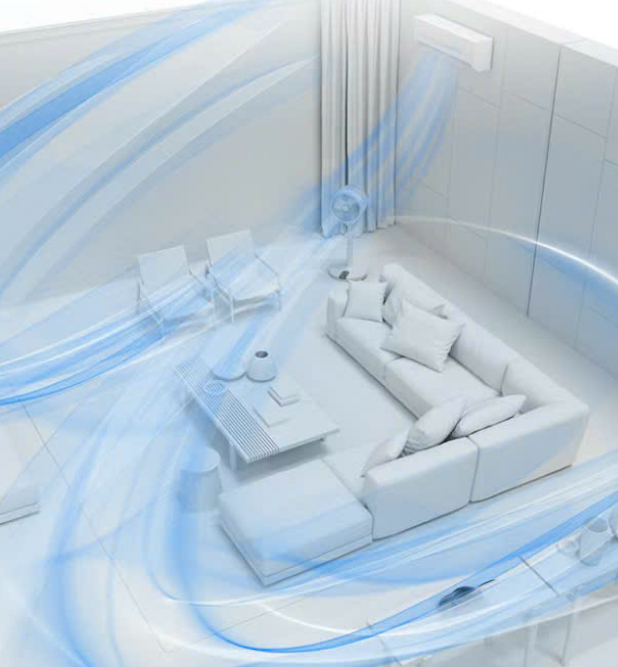 Góc quay rộng: Quay ngang 120° và hướng lên 90°, giúp luồng gió lan tỏa đều khắp phòng.