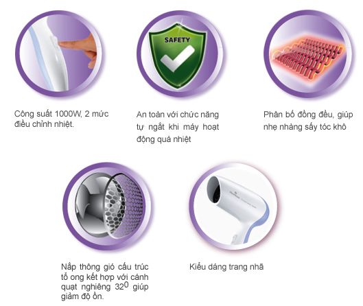 - Phân bổ nhiệt đều giúp sấy khô tóc nhẹ nhàng.