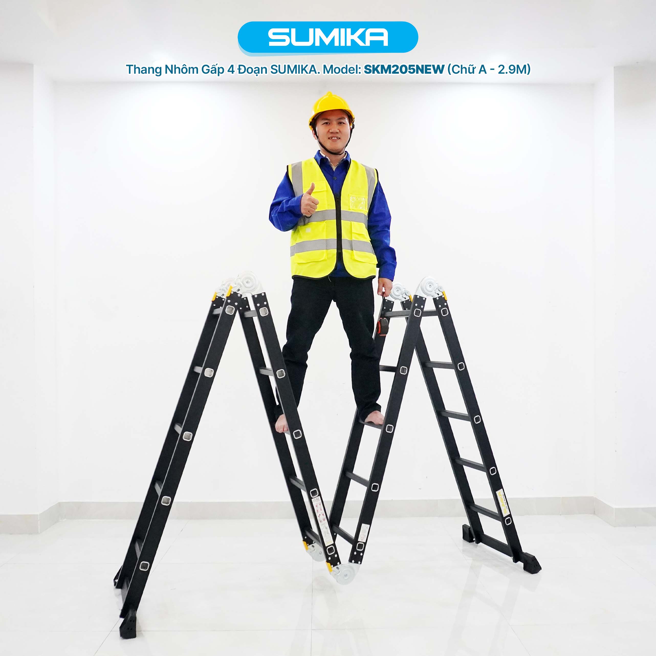 Thang nhôm Sumika SKM205 NEW là một sản phẩm được sản xuất theo công nghệ tiên tiến đến từ Nhật Bản, sử dụng chất liệu cao cấp và thiết kế đặc biệt nhằm đảm bảo cả tính thẩm mỹ lẫn độ an toàn khi sử dụng. Sản phẩm này đạt các tiêu chuẩn an toàn nghiêm ngặt của Châu Âu như EN131, EN 14183 và chứng nhận CE, mang lại sự yên tâm cho người dùng trong quá trình vận hành.