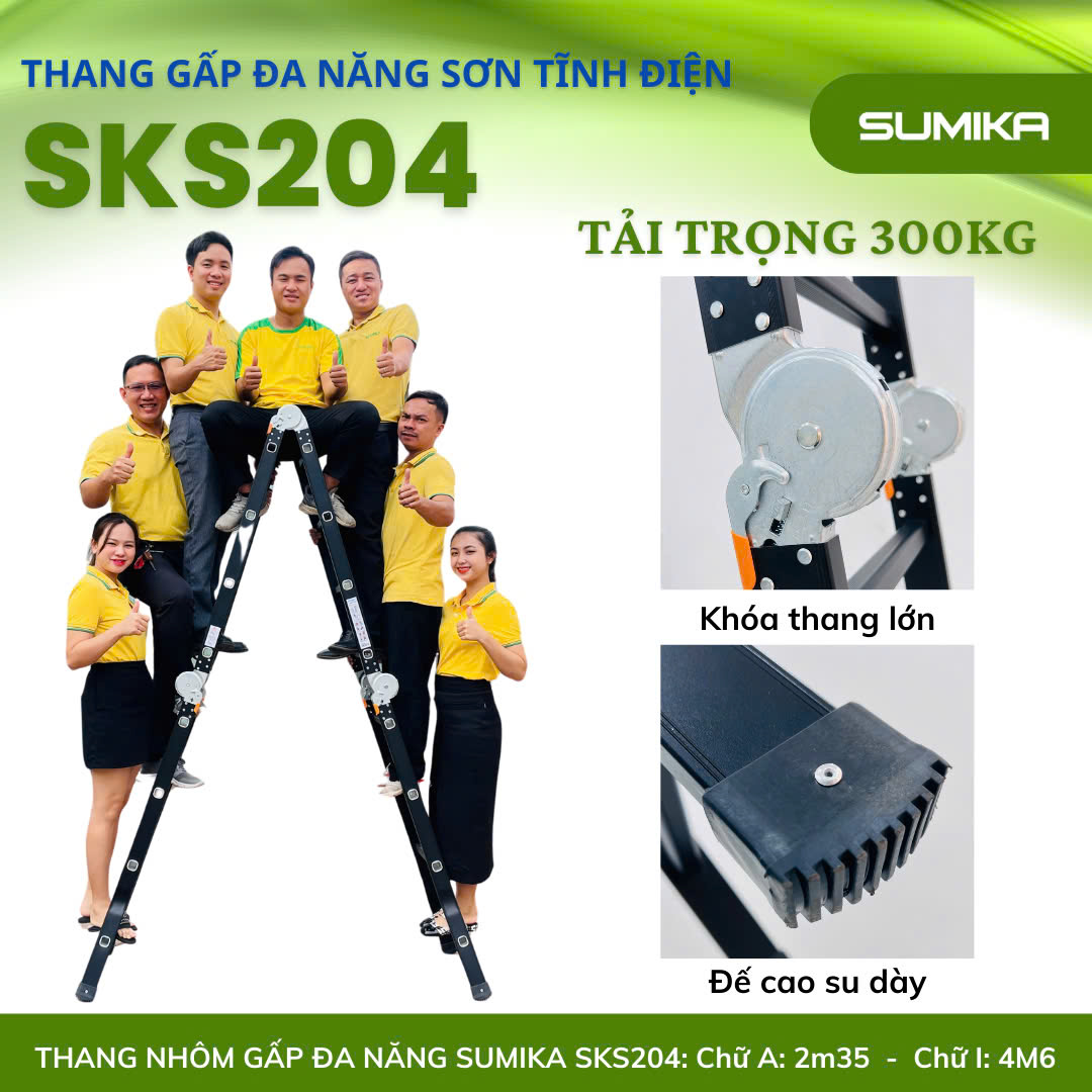 Với khả năng chịu tải trọng lên tới 300kg cùng chiều cao tối đa 4.7m, Sumika SKS204 là lựa chọn lý tưởng để phục vụ các công việc thi công, sửa chữa, vệ sinh công nghiệp hay sử dụng trong gia đình.