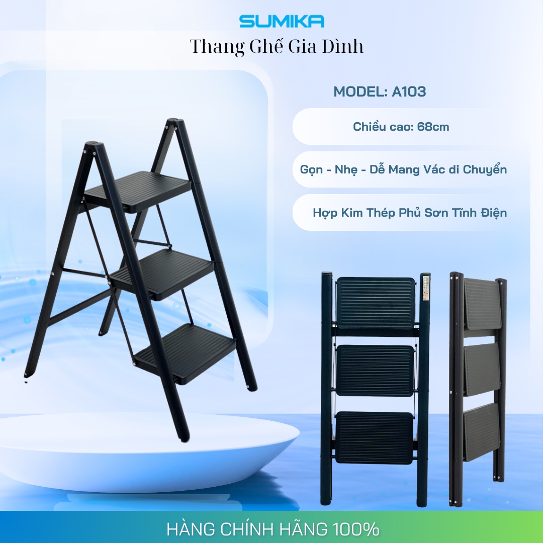 Thang ghế 3 bậc SUMIKA A103 là một sản phẩm tiêu biểu với thiết kế dạng chiếc ghế gồm 4 bậc thang, giúp người dùng leo lên xuống và làm việc trên cao một cách an toàn và thoải mái hơn. Sản phẩm được làm từ thép sơn tĩnh điện chắc chắn, đảm bảo độ bền và an toàn khi sử dụng.