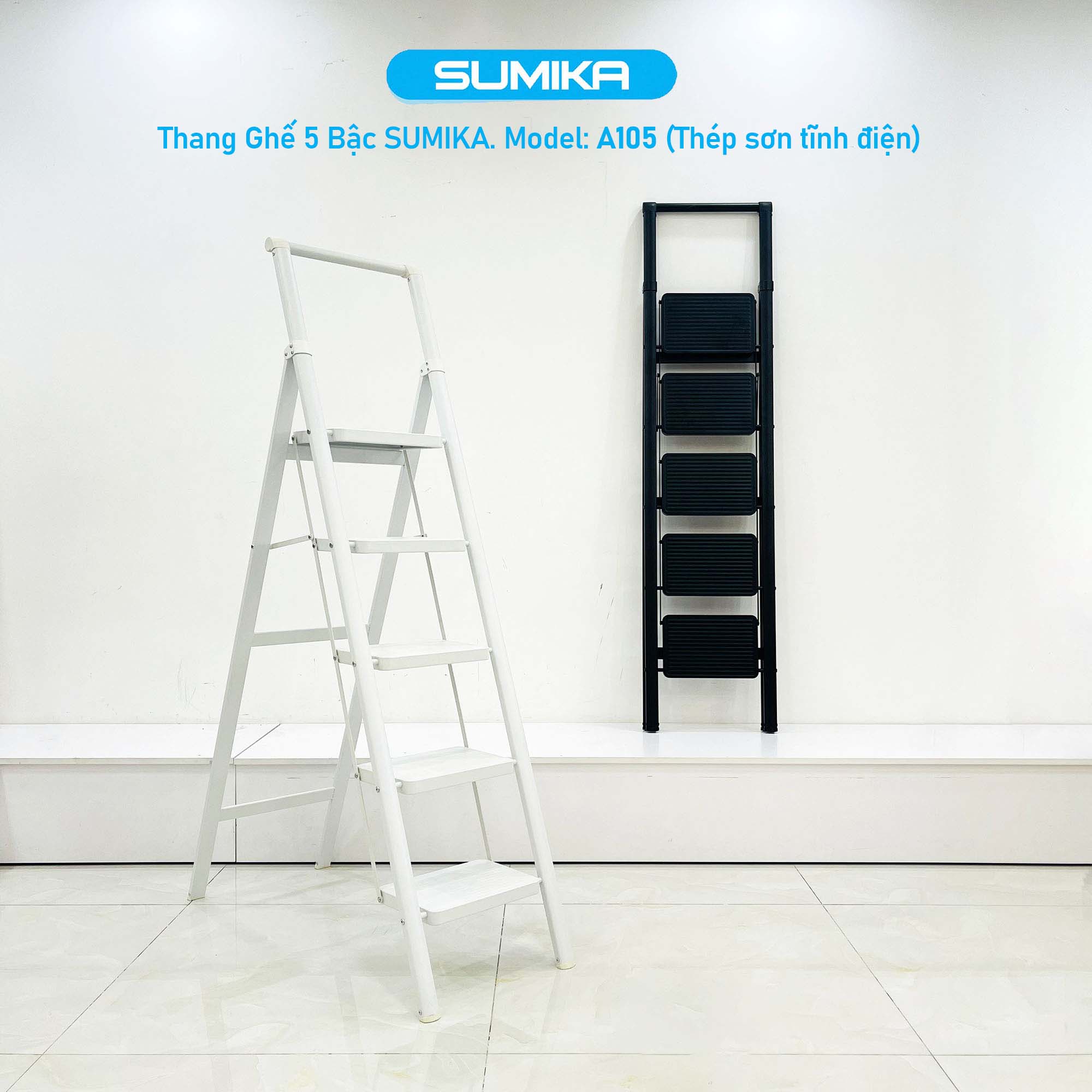 Thang ghế 5 bậc SUMIKA A105 là một sản phẩm tiêu biểu với thiết kế hình chiếc ghế gồm 5 bậc thang, hỗ trợ quá trình leo lên xuống và làm việc trên cao một cách an toàn và thoải mái. Sản phẩm được làm từ thép sơn tĩnh điện chắc chắn, đảm bảo độ bền và an toàn trong suốt quá trình sử dụng.