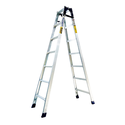 Đặc biệt, mẫu thang nhôm SKD507 có hai tay giằng khung thang làm từ nhôm hợp kim T6063 dày 3mm, giúp tăng cường sự chắc chắn và an toàn khi dùng thang ở dạng chữ A. Phòng nghiên cứu của Sumika đã thiết kế thang có thể dễ dàng xếp chữ A và duỗi thẳng thành chữ I, tạo sự tiện lợi tối đa cho người dùng trong nhiều trường hợp khác nhau. Các bậc thang nhôm có độ rộng lớn, mang lại sự thoải mái khi bạn đặt cả hai chân lên bậc thang, tránh cảm giác mỏi khi làm việc lâu. Bạn có thể đứng hoặc ngồi với hai chân trên các bậc khác nhau, thậm chí có thể có hai người lớn cùng làm việc trên thang mà vẫn đảm bảo an toàn.