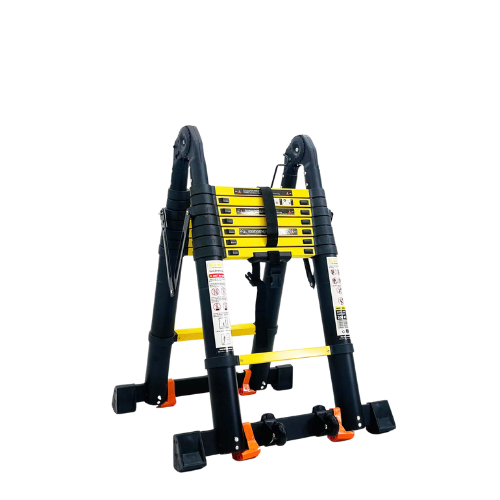 Sumika SKS500D sở hữu thiết kế hiện đại với khả năng sử dụng linh hoạt ở cả hai dạng: chữ A và chữ I. Đặc biệt, sản phẩm được tích hợp chốt khóa điều chỉnh chiều cao ở giữa thân thang, cho phép người dùng dễ dàng thao tác và thiết lập độ cao phù hợp với từng tình huống cụ thể. Điểm cộng lớn nhất nằm ở lớp sơn tĩnh điện màu đen kết hợp vàng nổi bật, không chỉ tạo điểm nhấn thẩm mỹ mà còn đóng vai trò như một lớp “áo giáp” bảo vệ thang khỏi các tác nhân gây hại từ môi trường như độ ẩm, không khí, các chất axit hoặc kiềm thường gặp trong quá trình làm việc.