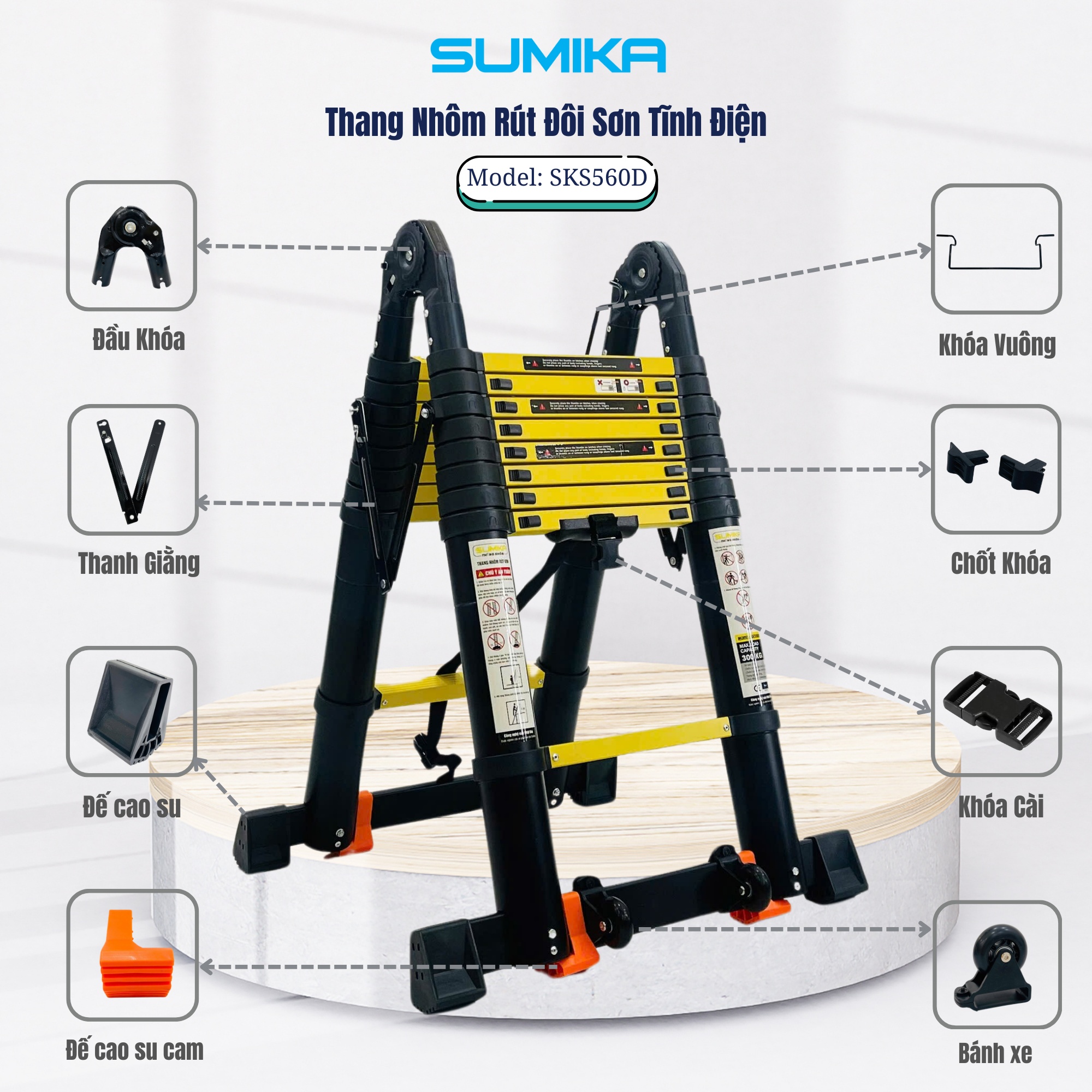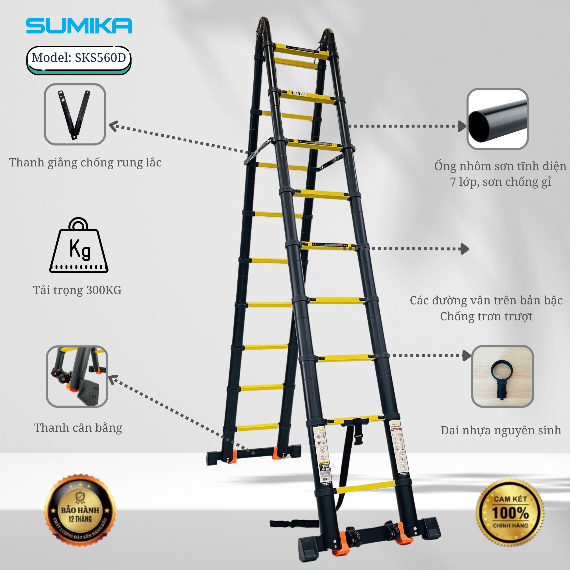 Sumika SKS560D là sự lựa chọn hoàn hảo cho những ai cần một chiếc thang nhôm rút đôi cao cấp, vừa linh hoạt, bền bỉ vừa đảm bảo an toàn tuyệt đối trong công việc.