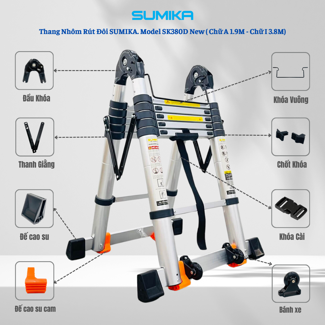 Bạn đang muốn tìm hiểu về thang rút nhôm đôi Sumika SK380D NEW (1.9m + 1.9m) nhưng chưa có được những thông tin thật sự bổ ích. Hôm nay, Phạm Gia Nguyễn sẽ chia sẻ một cách chi tiết nhất về thông số kỹ thuật cũng như các đặc điểm nổi bật của sản phẩm này, nhằm giúp quý khách hàng đưa ra sự lựa chọn phù hợp với công việc.