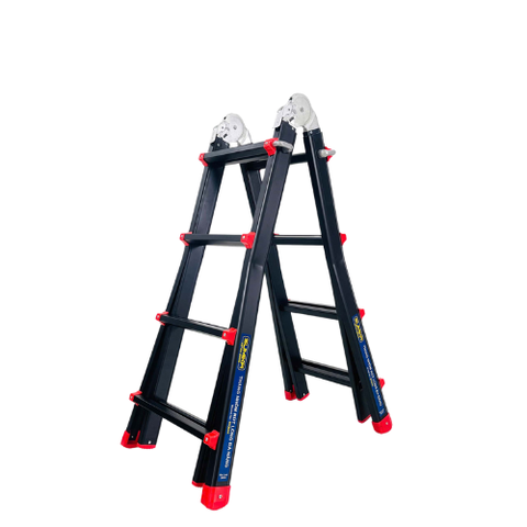 Một trong những điểm cải tiến đáng chú ý nhất của SKM44 là khả năng gập, rút và chuyển đổi linh hoạt giữa nhiều dạng thang: từ chữ A, chữ I kéo dài, chữ L khi gặp vật cản, đến dạng so le khi làm việc trên cầu thang. Sự linh hoạt này giúp thang phù hợp với nhiều địa hình như bậc cầu thang, nơi không có điểm tựa, mặt bằng hẹp hoặc có chướng ngại vật.
