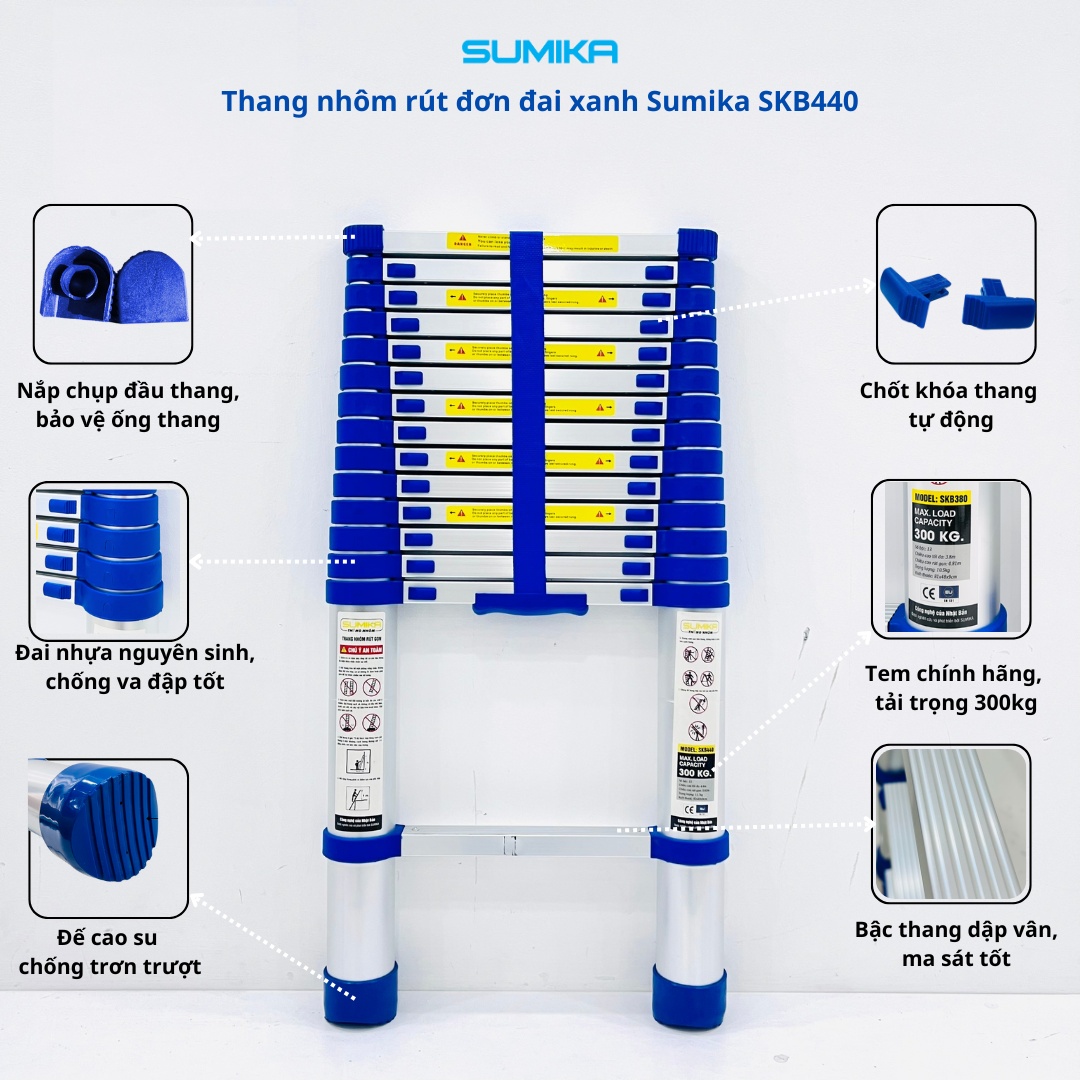 Thang Nhôm Rút Đơn Đai Xanh Sumika SKB440