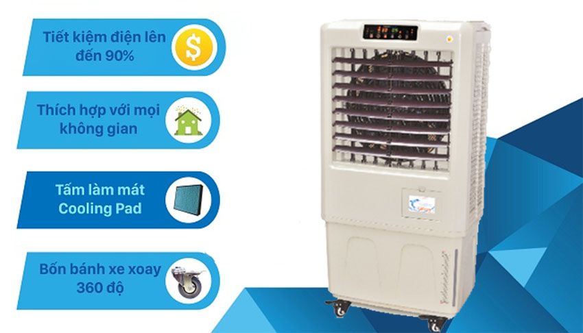 Thiết bị máy làm mát cảm ứng này sử dụng bảng điều khiển cảm ứng có màn hình hiển thị Led giúp cho việc theo dõi và sử dụng được dễ dàng. Bên cạnh đó, thiết bị còn đi kèm với remote điều khiển từ xa giúp cho việc điều khiển được tiện lợi và nhanh chóng hơn nhiều.