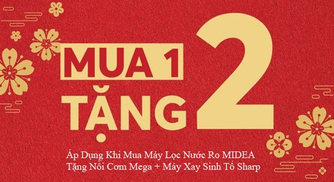 Khuyến Mãi Xã kho Đón Tết Mua 1 Tặng 2 - Cam Kết Giá Tốt Lưu ý: Số lượng khuyến mãi có hạn, vui lòng liên hệ Hotline 0938 205 056 hoặc Chat ngay để được tư vấn và hỗ trợ đặt hàng chính xác. Mua 1 máy lọc nước Ro Midea bên dưới nhận ngay 03 phần quà: - 01 Máy xay sin...